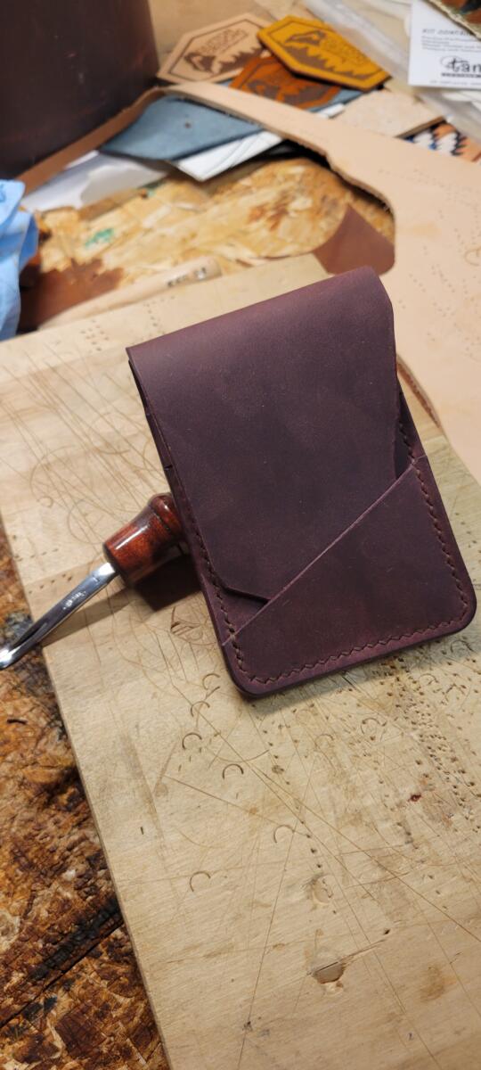 Here is our SlimTuck leather wallet. This handmade wallet is the perfect cross between slim and bi-fold! As with all of our wallets, this wallet is completely made by hand. Hand cut, hand treated, hand stitched.